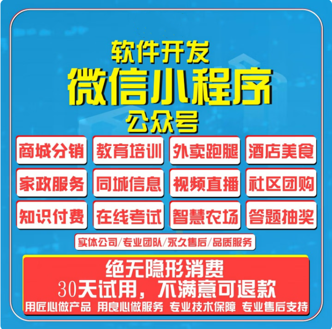微信小程序开发定制公众号微商城拼团模板制作门户网站社区团购餐饮点餐外卖跑腿平台教育培训预约APP源码