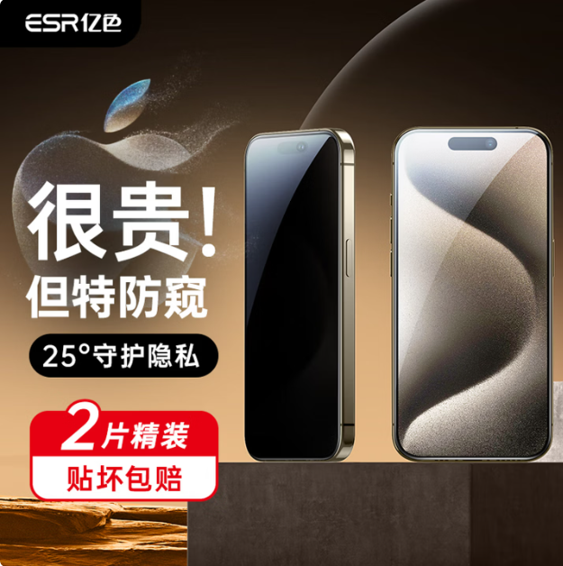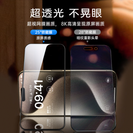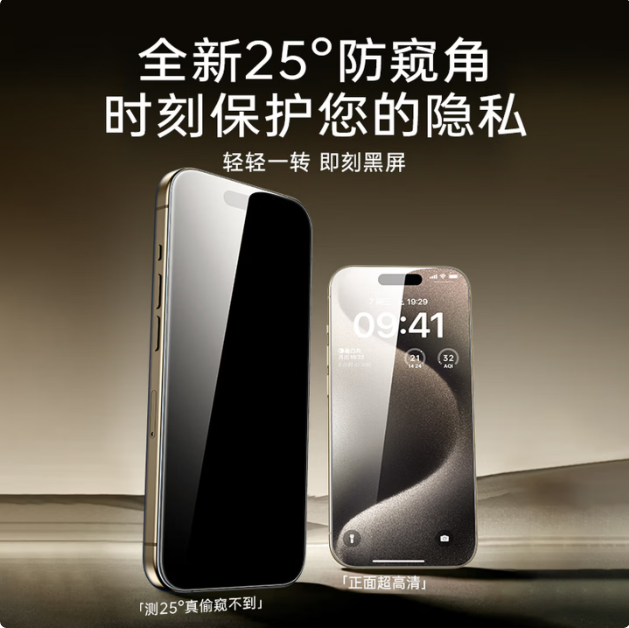 包装清单:iPhone 15 Pro Max全覆盖 防窥 钢化玻璃膜*2PCS,贴膜神器*1,贴膜辅助工具包*2